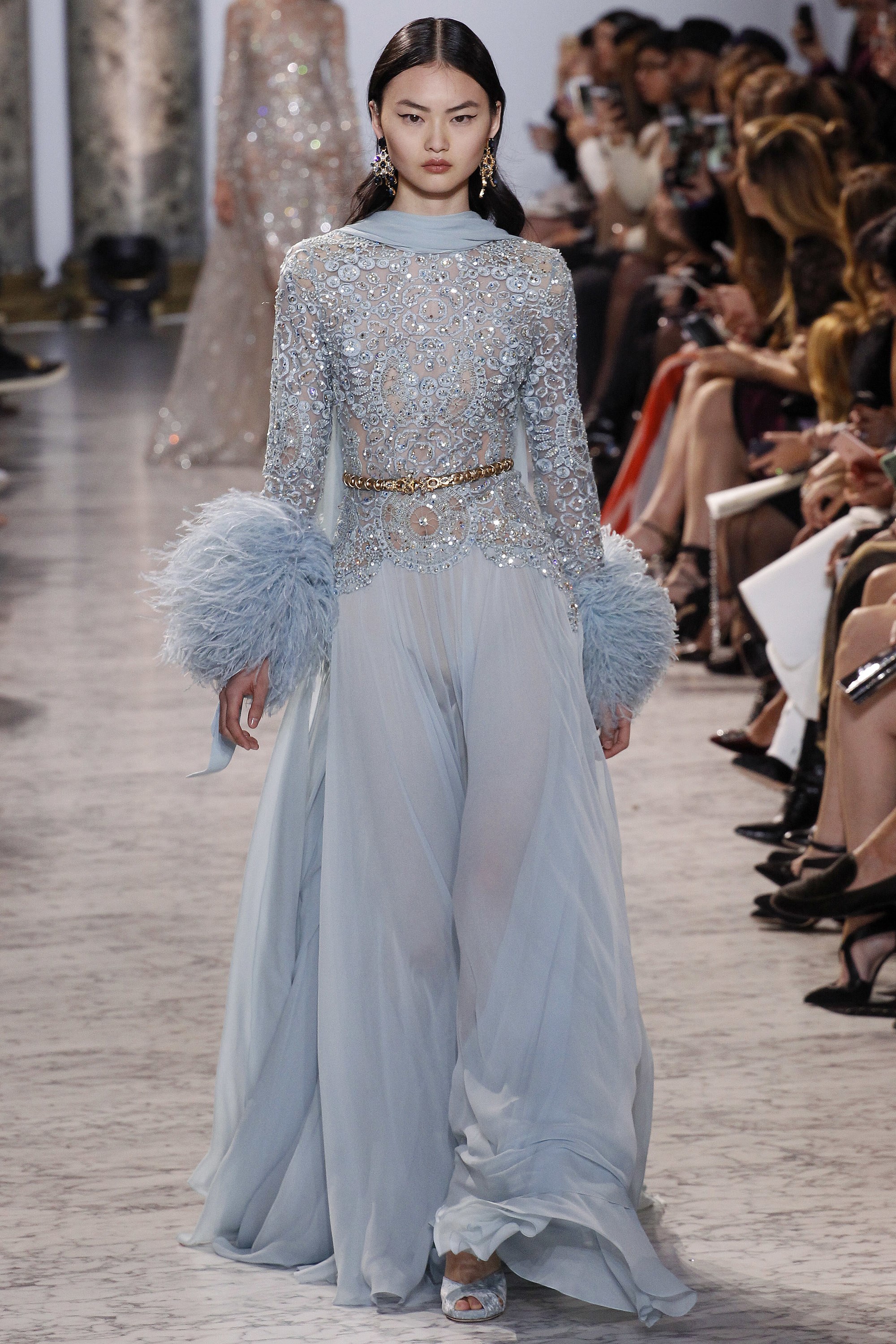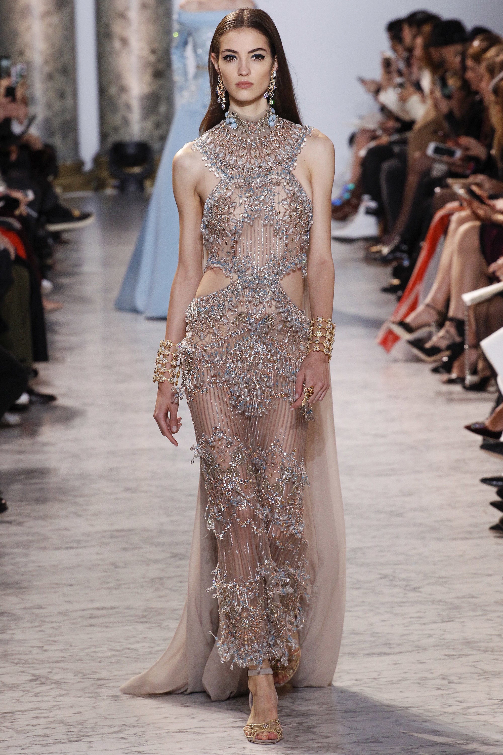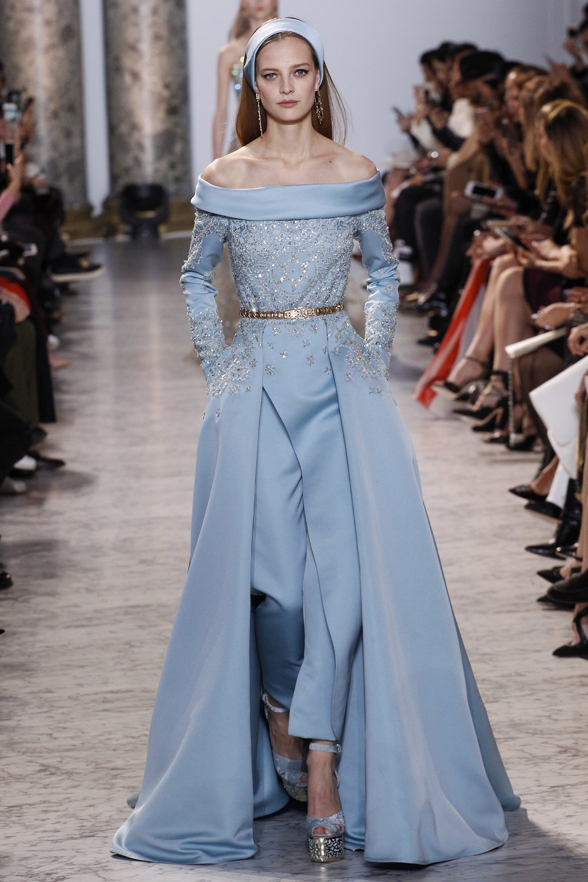 With the Oscars right around the corner, it seems fitting that we explore the lovely gowns gracing the catwalks. Royal blue. Gilded crown gold. The collection’s sleek silhouettes, prim hemlines, and satiny textures is very Jackie O. meets Cleopatra. One can only hope someone, somewhere graces the red carpet with one of these lovely ensembles.
