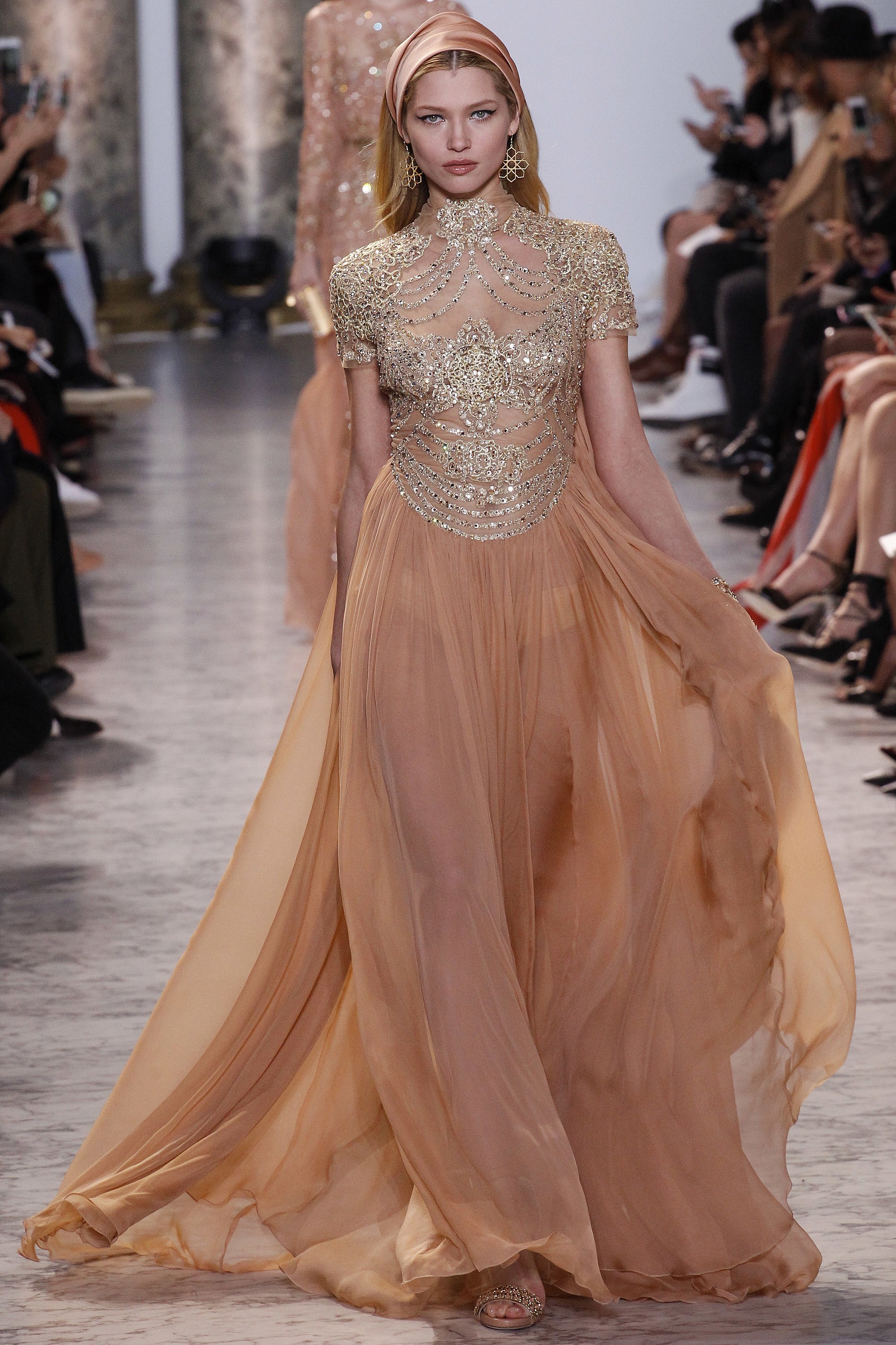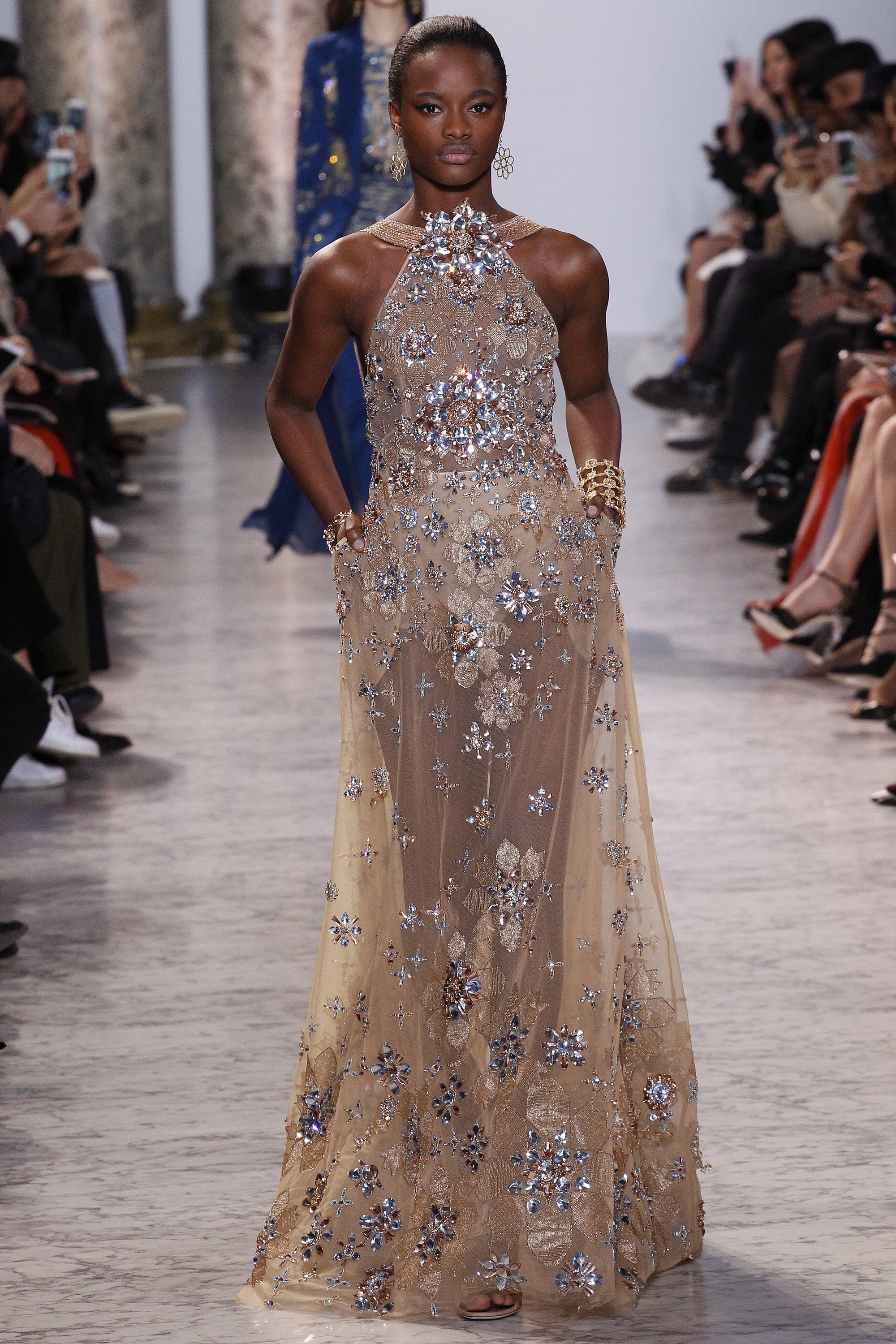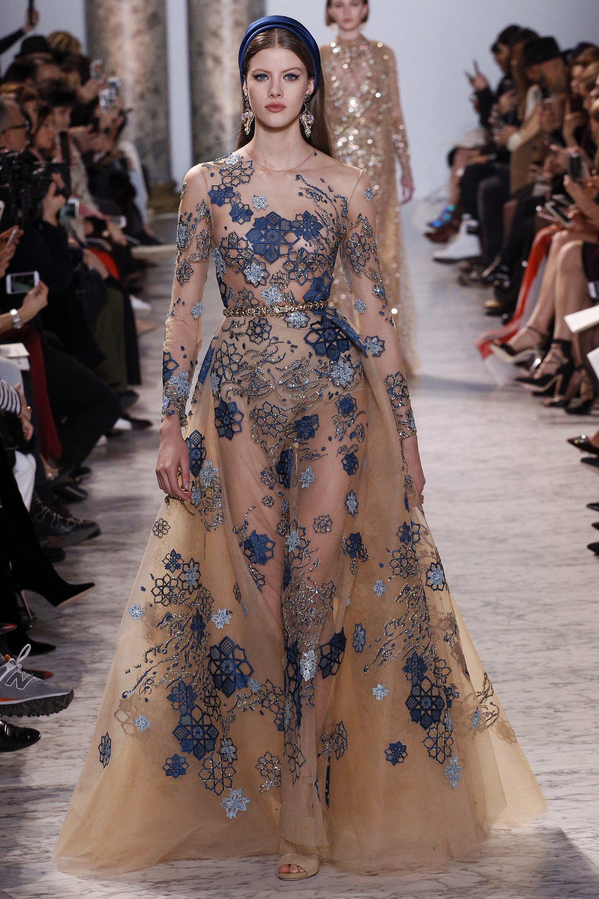 With the Oscars right around the corner, it seems fitting that we explore the lovely gowns gracing the catwalks. Royal blue. Gilded crown gold. The collection’s sleek silhouettes, prim hemlines, and satiny textures is very Jackie O. meets Cleopatra. One can only hope someone, somewhere graces the red carpet with one of these lovely ensembles.